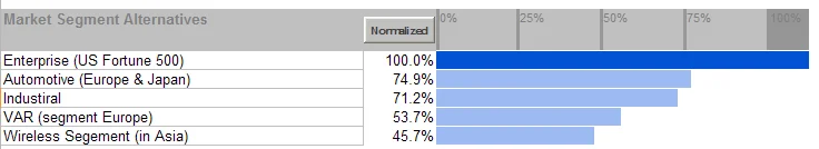 Using the weighted objectives, they ranked each segment. The Enterprise segment was the clear winner. Based on their objectives, they used the decision model to determine that this segment would contribute most to goal achievement.